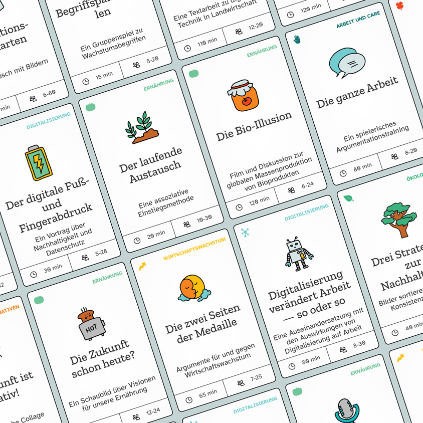 Die innovative Bildungsplattform bietet machtkritische und interaktive Methoden zur sozial-ökologischen Transformation an. Die Methodensammlung richtet sich an alle, die in einem pädagogischen Kontext mit Jugendlichen und jungen Erwachsenen arbeiten.